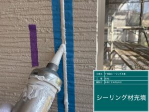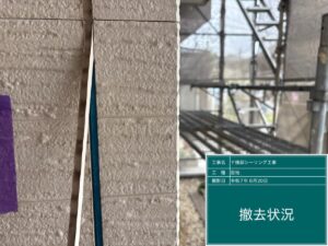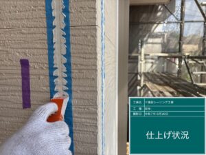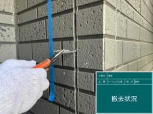 既設のシーリング材を撤去し、新しいシーリング材を充填する「打ち替え工事」にて施工いたしました。