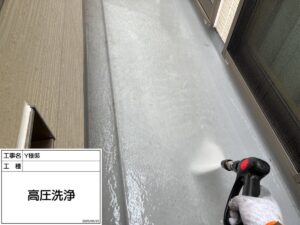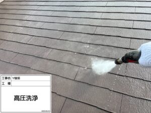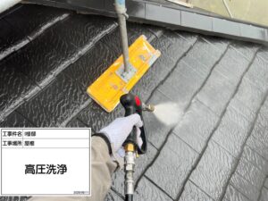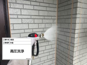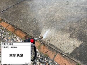 塗装作業に入る前に、高圧洗浄機を使用して長年積もった汚れやコケなどを洗い落としていきます。