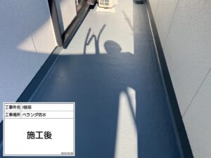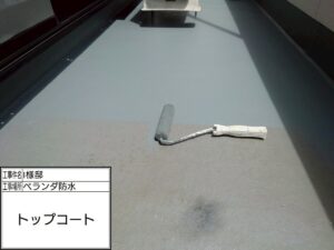 ベランダ防水はケレン作業からアセトン拭き、下塗りには「層間プライマー」を使用しトップコート塗りました。
