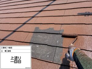 上塗り1回目と2回目には「スーパーセランマイルド」を使用いたしました。