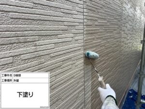 刈谷市S様邸の外壁には専用下塗り材である「ダイナミックプラサフ」を使用し、上塗り1回目と2回目には「スーパーセランフレックス」を使用致しました。