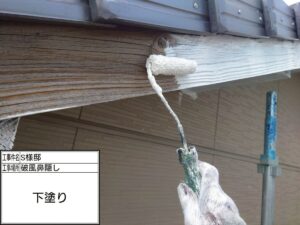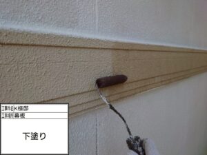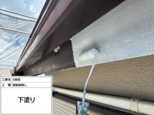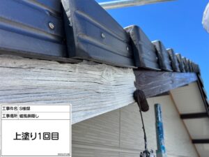 破風・鼻隠し・モールは鉄製ではないため、下塗りには「浸透形Mシーラー」を使用し、上塗りは鉄部と同様の「スーパーセランマイルド」を使用しました。