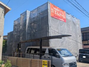 2025年7月15日、天候にも恵まれ無事に刈谷市S様邸の足場組立作業を行う事ができました。