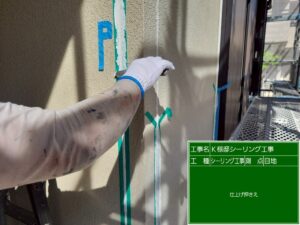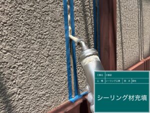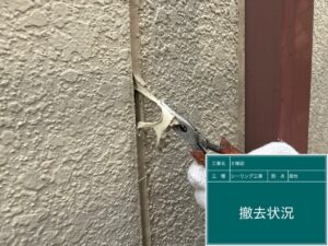 既設のシーリング材を撤去し、新しいシーリング材を充填する「打ち替え工事」にて施工いたしました。