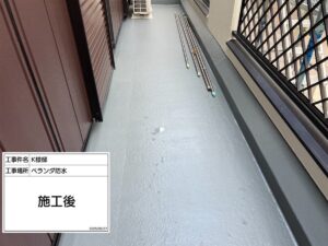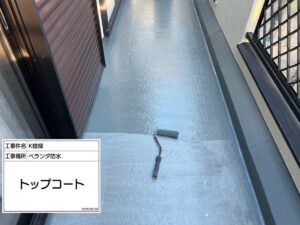 ベランダ防水はケレン作業からアセトン拭き、下塗りには「層間プライマー」を使用しトップコート塗りました。