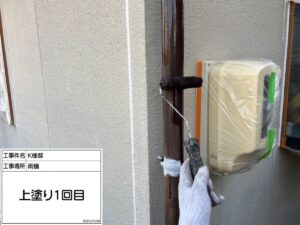 刈谷市S様邸の外壁には専用下塗り材である「エコカチオンシーラー」を使用し、上塗り1回目と2回目には「ダイナミックトップ」を使用致しました。