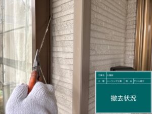 刈谷市S様邸の現地調査を行った際に、外壁目地、サッシ周りのシーリング材に劣化が見られました。