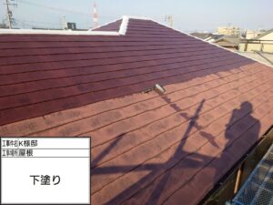 鉄部は錆が発生しやすいため、塗装を行う前にケレン作業を行い既存の塗料をしっかり落とし、錆止め効果のある下塗り材を塗布しました。