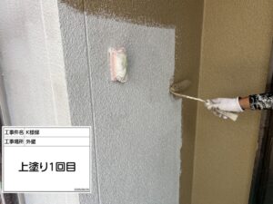 上塗り1回目と2回目には「ダイナミックトップマイルド」を使用いたしました。