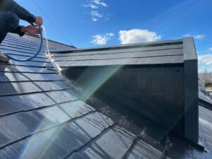 原因と考えられる箇所が見当たらない場合は、散水調査を行い水の侵入経路を調べます。