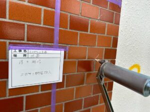 タイル外壁については、ひび割れ補修の他に浮き補修があります。これは、タイルが下地から浮いている状態のため、剥がれ落ちないように固定する補修です。穴をあけてエポキシ樹脂をタイル裏に注入し、空洞を埋める作業を行います。
