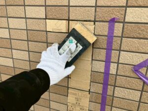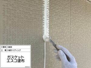 ガスケット処理:外壁目地をシーリングではなく「ガスケット」と呼ばれる部材で埋めている建物があります。ガスケットが浮いていたり外れてしまっている場合ははめ直し、塗料の剥がれを防ぐためガスケットに適した下塗り材を塗布してから塗装を行います。