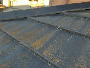 刈谷市S様のお家はモニエル瓦屋根です。<苔>の繁殖が見受けられました。塗膜が劣化している状況といえます。