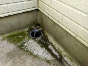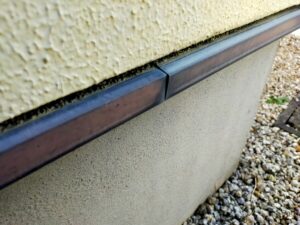 雨樋・土台水切り・シャッターBOX・勝手口庇など各所に<チョーキング現象>や<色褪せ>が見受けられました。雨樋は、劣化が進み塩化ビニールの弾力性が低くなると破損の可能性が高まります。付帯部の塗装も重要です。