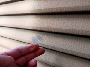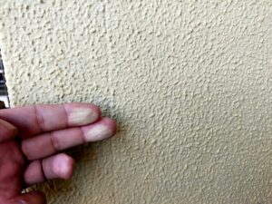 刈谷市K様のお家はサイディング外壁です。代表的な劣化症状である<チョーキング>現象が発生していました。また<クラック(ひび割れ)>が発生しているため、塗装の前にシーリング材などで補修を行う処理が必要だと考えます。