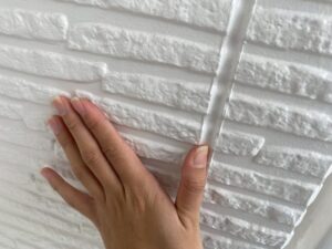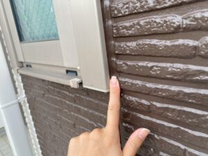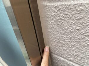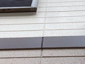 シーリングは弾力があり、劣化や不具合は見受けられませんでした。シーリング上の塗膜にひび割れが見受けられますが、塗膜の割れでありシーリング材に劣化は見受けられませんでした。