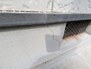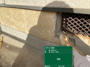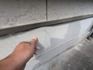 知立市I様邸の現地調査にお伺いしたところ、ひび割れが起こっている箇所がありました。表面に施工されたモルタルの浮きも見受けられ、補修が必要な状態と判断しました。