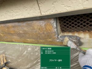 プライマー塗布:新しく施工するモルタル材の密着を高めるプライマーを塗布します。