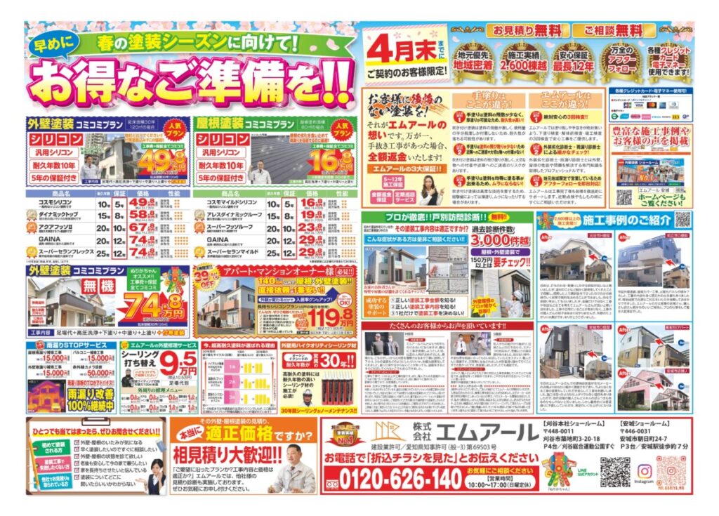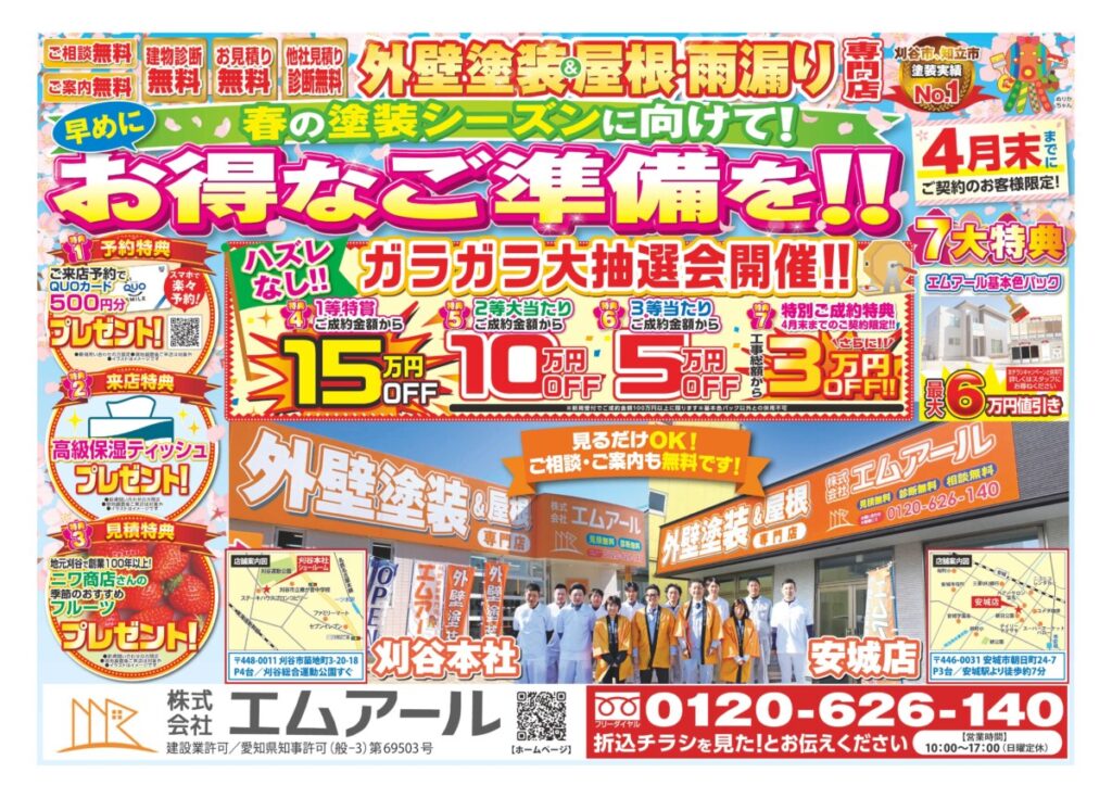 2026年3月春の塗装キャンペーン!刈谷市・安城市・知立市の外壁・屋根塗装専門店は株式会社エムアール
