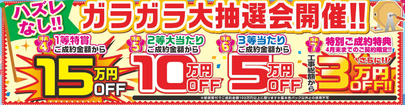 春の塗装シーズンに向けて、ハズレなし!の【ガラガラ大抽選会】を開催いたします🎉🎉梅雨や夏までの外壁塗装をご検討されている方や、年内での施工を考え始めたい方はこの機会に御見積をご依頼くださいm(_ _)m