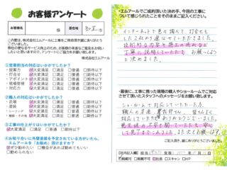 他社からも見積もり取りましたが、施工内容の説明と仕様について細かく丁寧に接してくれ、じっくり検討する時間を与えてくれました。打ち合わせから工事完了までスムーズに進み信頼してお任せでき満足しております。