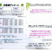O様ありがとうございました。他社の見積内容の差など疑問点をしっかりとぶつけていただいたことで、O様がどういった工事内容をご希望なのかをこちらもしっかりと把握することができ、より良いご提案ができ、良い工事につながりました。毎日の職人さんへのご配慮や工事完了時のご配慮も有り難く、職人共々励みになりました。