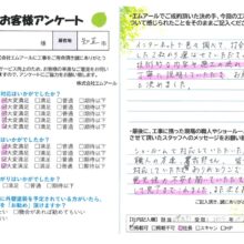 インターネットで色々調べて、打ち合わせをした2社から選ばせて頂きました。技術的な内容や施工の流れなど丁寧に説明して頂きお願いしようと決めました。 【スタッフへのメッセージ】 ショールームで対応して……