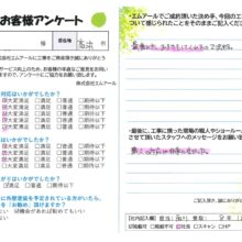 各社それぞれの話を聞きましたが田尾さんの完成後の姿が目に浮かぶような詳細な説明をしていただき御社にお任せしようと迷いなく決めさせていただきました。想像以上にきめ細やかな作業を拝見させていただき満足して……