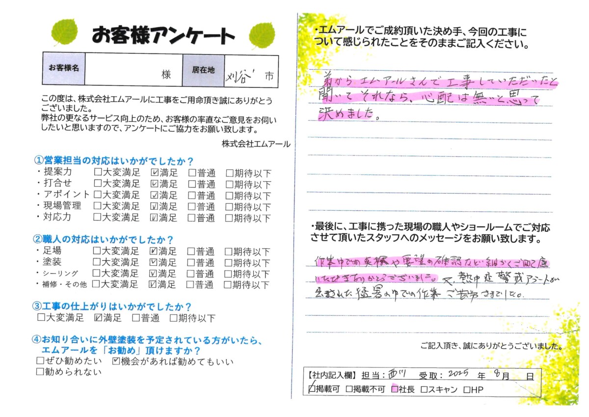 刈谷市オーナーK様(2025年6月870)