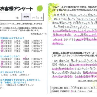 弟からエムアールさんで工事していただいたと聞いて、それなら心配はないなと思い決めました。 【スタッフへのメッセージ】 作業中での点検や要望の確認など細かくご心配いただきありがとうございました。熱中……