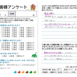 現場管理が良く大満足です。 【スタッフへのメッセージ】 大満足です。